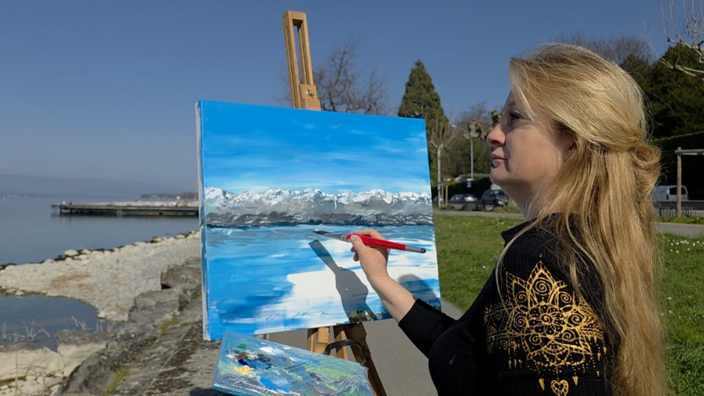 Réalisation d’un tableau sur toile : création d’un paysage pour l’intérieur, au bord du lac.